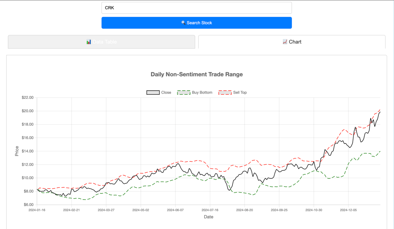 CRK (Comstock Resources) - A strong energy play benefiting from rising natural gas prices and increased market sentiment around energy independence.