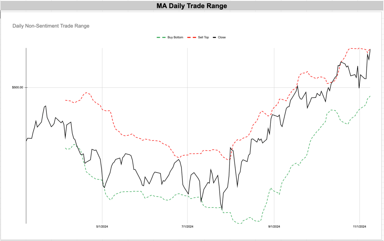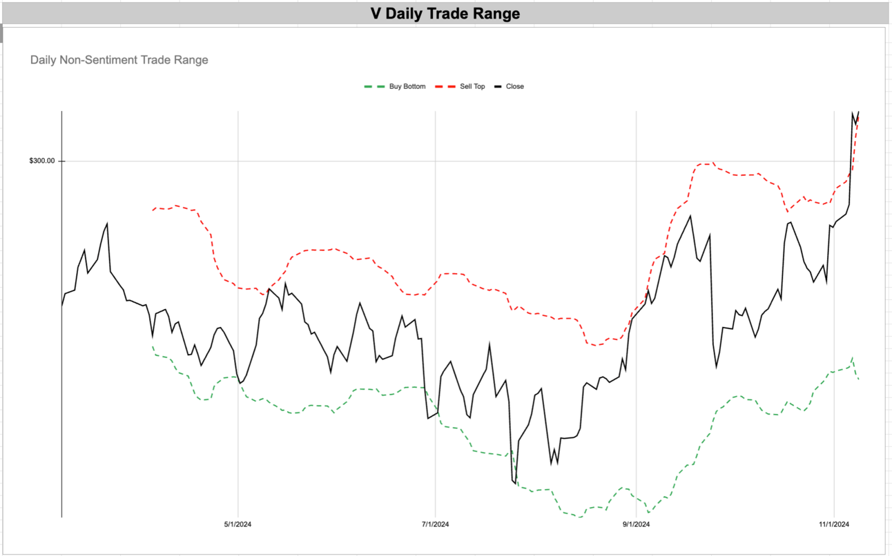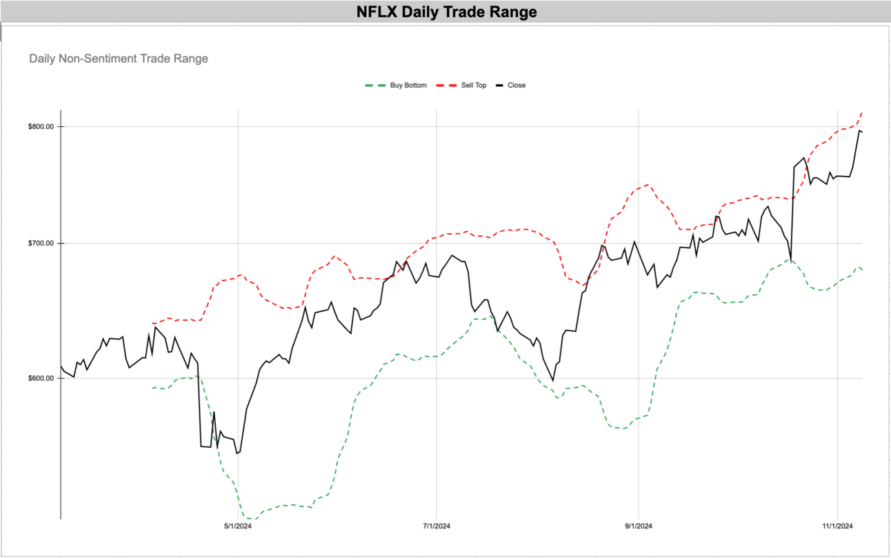 Tech giants like NVIDIA (NVDA) and Tesla (TSLA) continue to set new highs, riding waves of investor interest that have persisted and grown over recent months. In financials, Visa (V) and Robinhood (HOOD) show similar strength, while consumer-facing stalwarts like Costco (COST) and Netflix (NFLX) prove that resilience extends into retail and entertainment. The consistent positive sentiment in the VIX and VVIX indices indicates a market more comfortable with risk, suggesting that traders and investors are both confident in current conditions and optimistic about what’s to come.