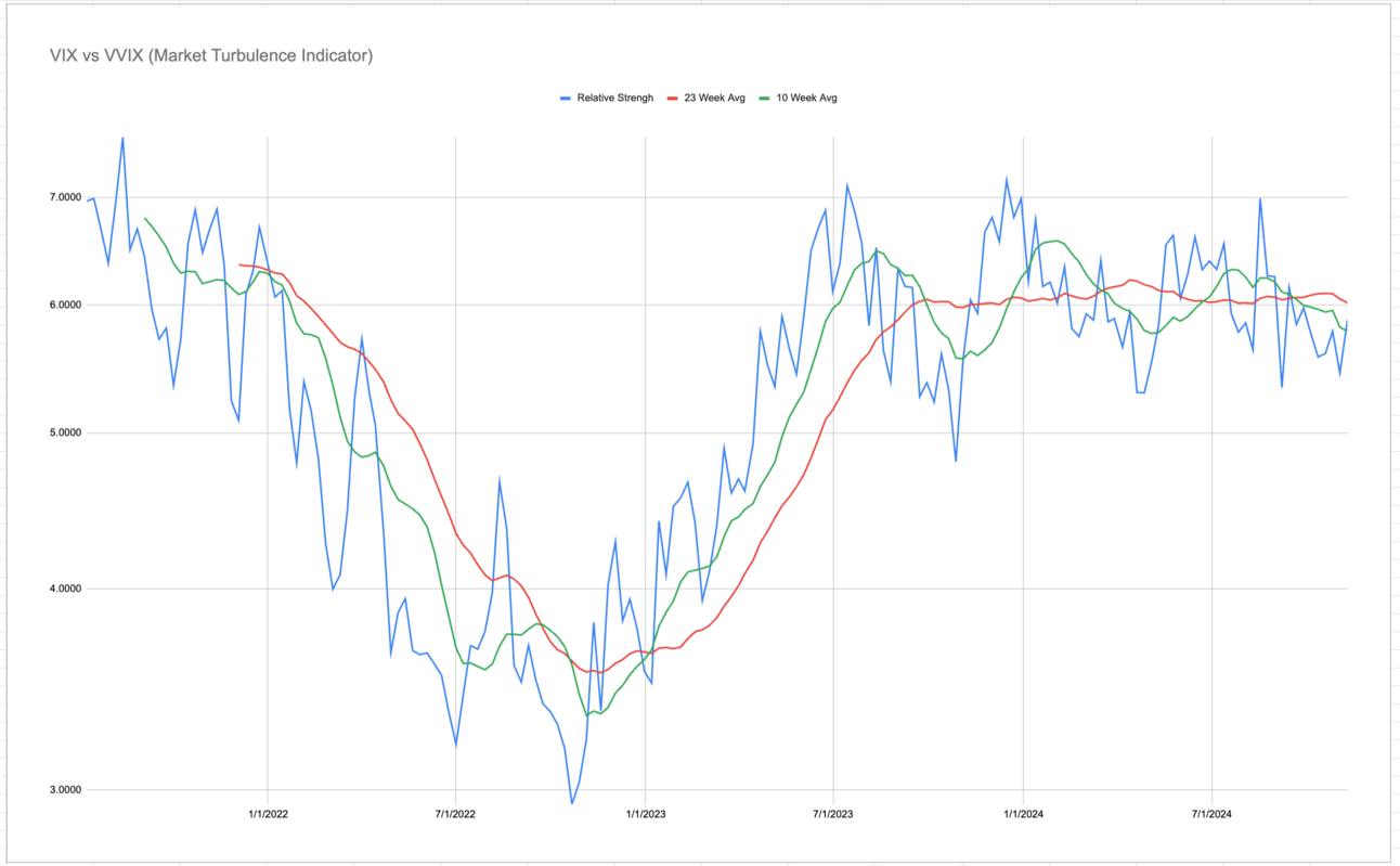 The Turbulence Indicator adds another layer of caution. While the current setup suggests stability, the 23 week broke above the 10 week for the first time in a long time. Indicating a bullishness.