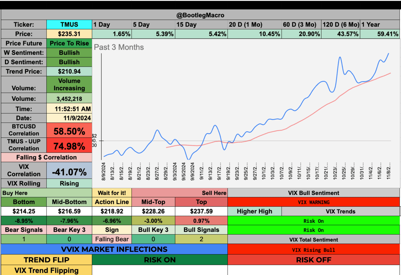 At the same time, sentiment is powerful and infectious. With major indices signaling “Risk On” across the board, the market feels primed for new highs. This is a moment for both experienced investors and those new to the game 💼. The resilience we’re seeing across diverse sectors, from T-Mobile (TMUS) in telecom to Stryker (SYK) in healthcare, paints a clear picture: confidence is back, and the market is open for business. For those watching closely, this is more than just a bullish phase—it’s a potential shift into a new era of growth and optimism 🌅.
