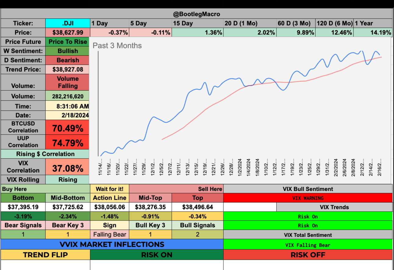 VIX / VVIX improved! Blue up is good, blue down is bad. The blue line has a HIGH CORRELATION to overall markets. I have to admit, this isn’t pretty and is a cause for concern. But…I don’t see price action reflecting this bearish picture in the volatility index.