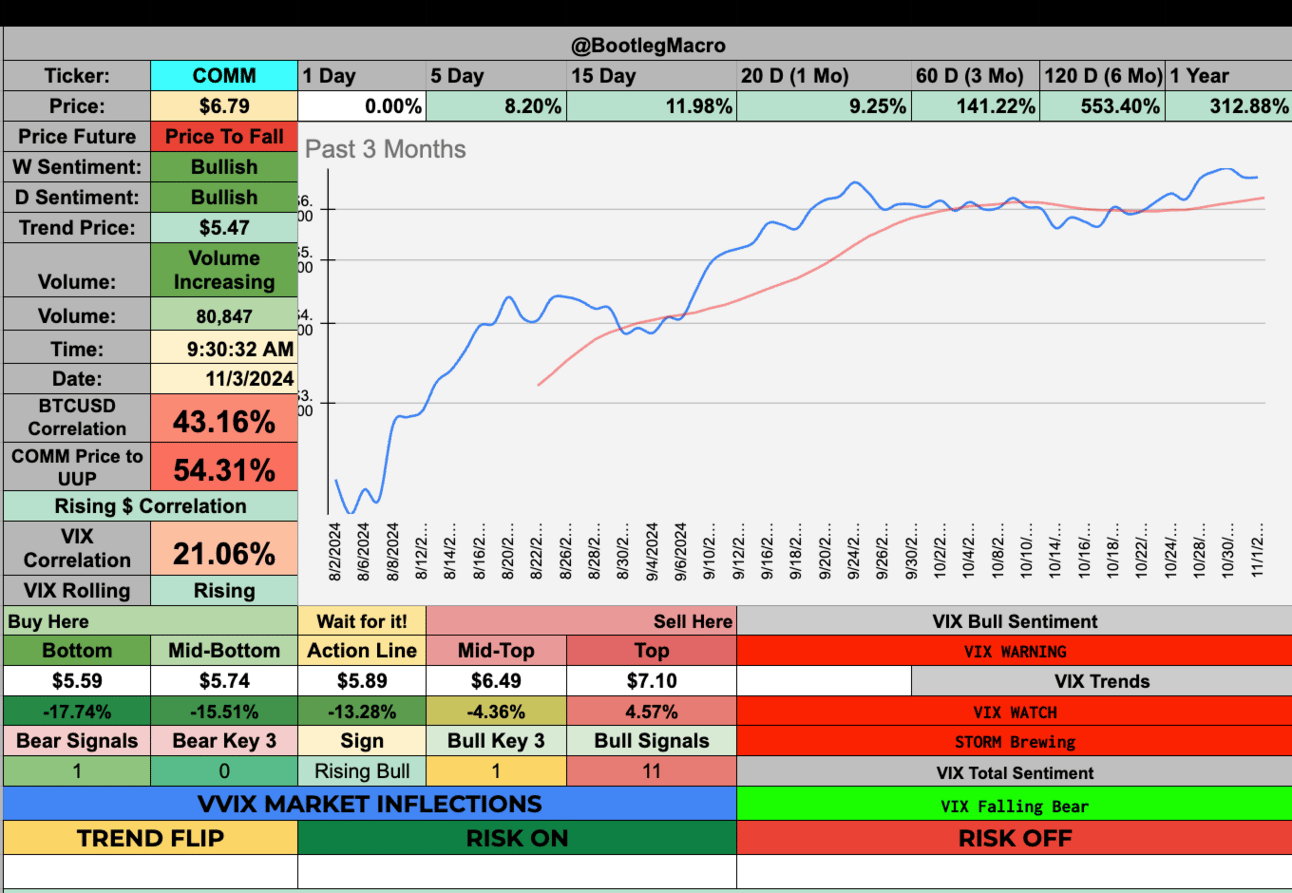 I personally enjoy the right range in COMM right now. This is ripe for a breakout in volatility and price.