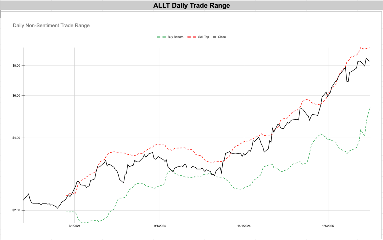 Regarldess the range is showing BULLISH signals. You can see here on the daily trade range, the drop from $25 to $20 at the top of the range. This happened on 1/24/25. Very bullish.