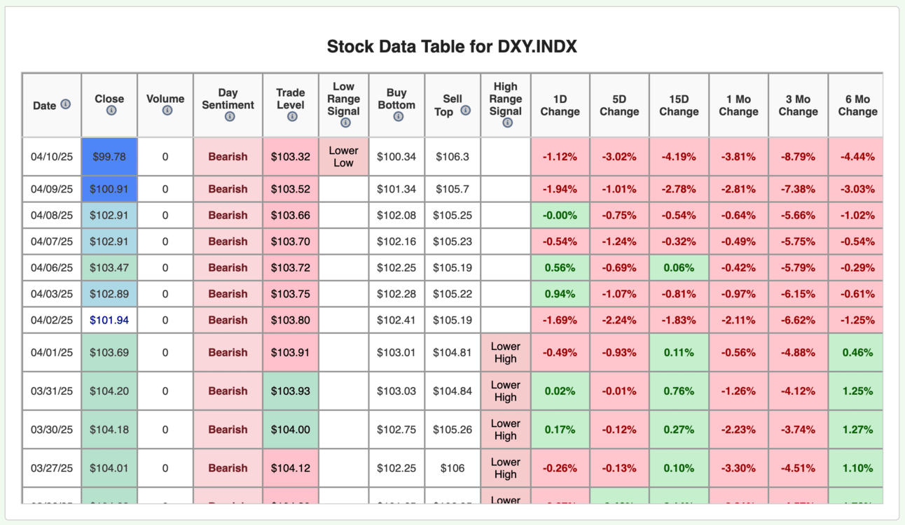 Gold is breaking out! The dollar is collapsing! Tariffs are in whipsaw mode. And VIX is living above $30! An interesting moment...the New Highs List this week tells the story of the overall market.